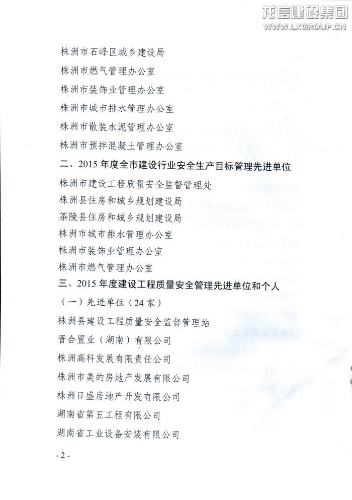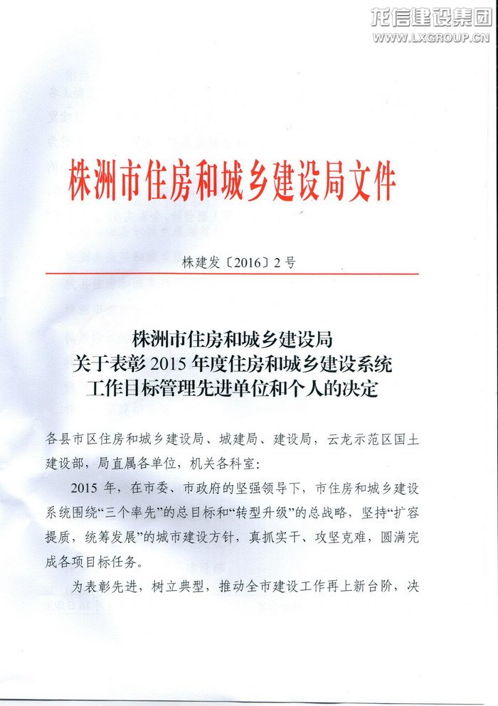 近日收到株洲市住房和城鄉(xiāng)建設(shè)局株建發(fā)[2016]2號文,關(guān)于表彰2015年度住房和城鄉(xiāng)建設(shè)系統(tǒng)工作管理目標(biāo)先進單位和個人決定,由我公司承建的晉合湘水灣項目部獲2015年建設(shè)工程質(zhì)量安全管理先進單位,工程建設(shè)方晉合置業(yè)(湖南)有限公司亦獲得2015年建設(shè)工程質(zhì)量安全管理先進單位。此次獲獎是繼株洲晉合湘水灣一期高層4#、5#、6#樓被湖南省住建廳、湖南省建筑業(yè)協(xié)會評為“2013—2014年度第二批湖南省優(yōu)質(zhì)工程”后又一重要獎項。