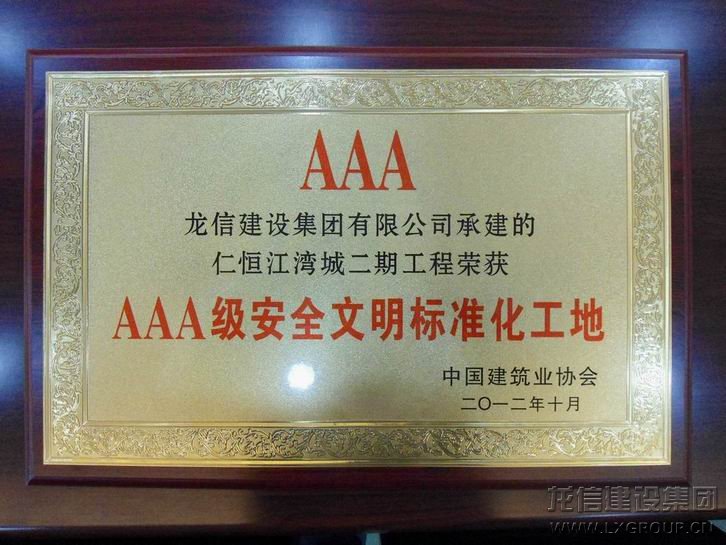 仁恒江灣城二期項目獲得“2012年AAA級安全文明標準化誠信工地”榮譽稱號